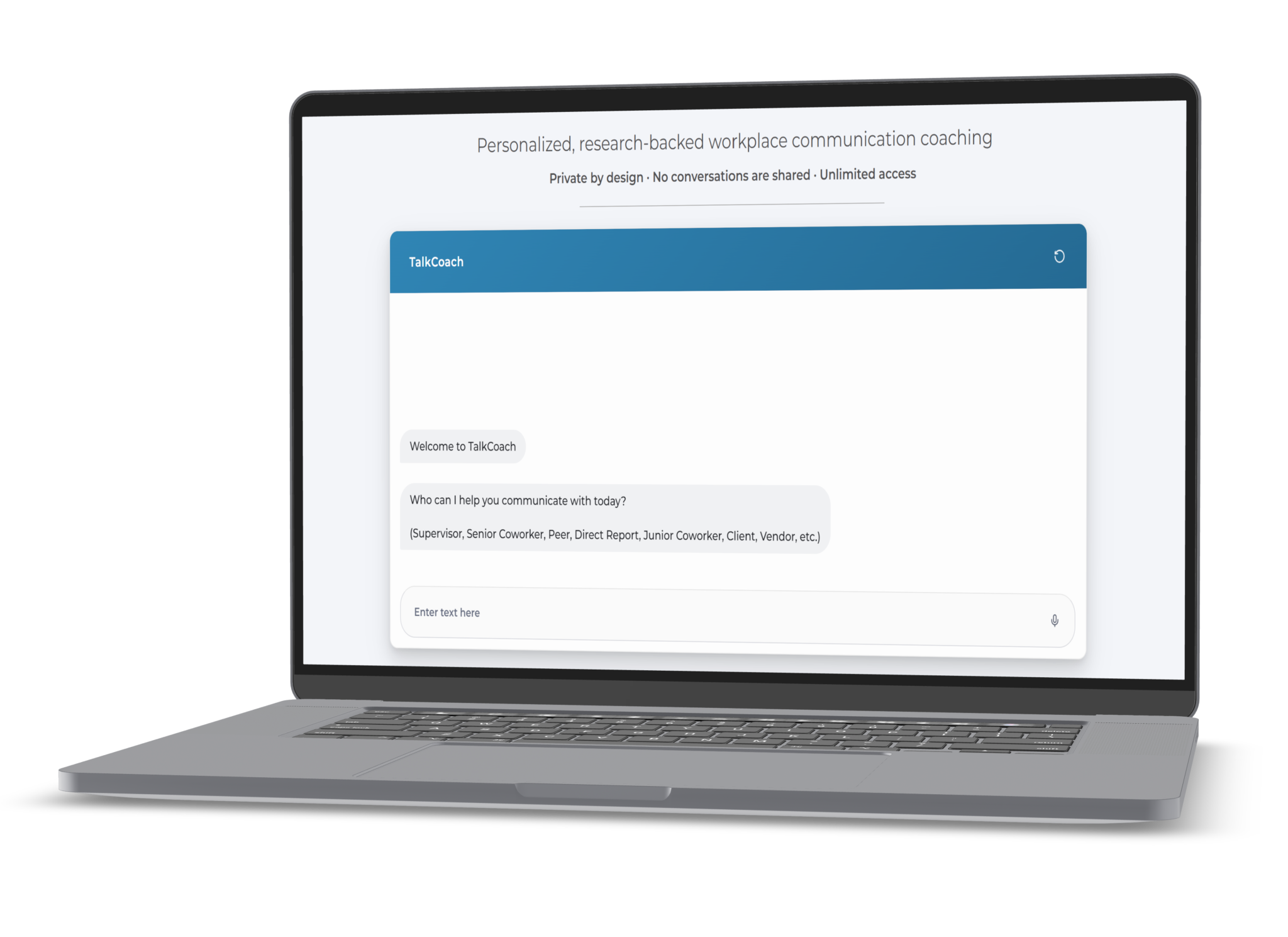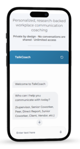 TalkCoach delivers expert, evidence-based workplace communication guidance at scale, using AI to apply proven practices consistently in real situations – not generic AI responses.